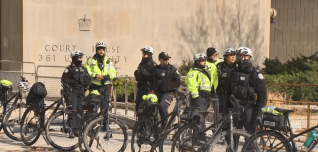 Полиция Торонто, контролирует протест на University Avenue в субботу, 4 апреля 2026 года. Фото: CityNews