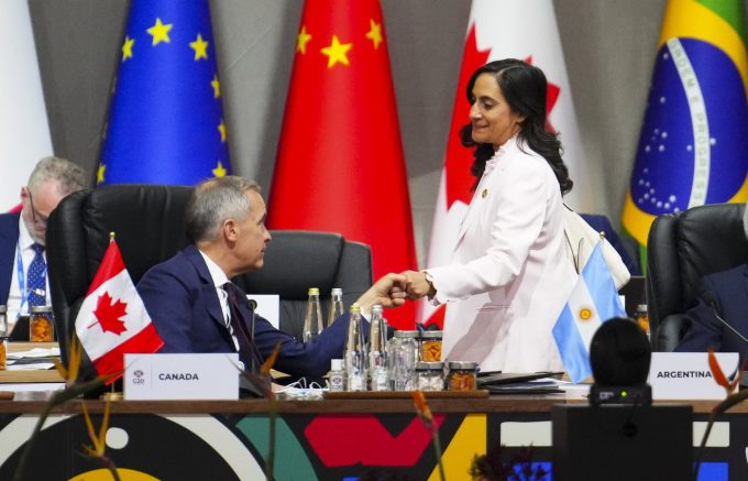 Премьер-министр Канады Марк Карни и министр иностранных дел Анита Ананд во время участия в рабочей сессии саммита G20 в Йоханнесбурге, Южная Африка, в воскресенье, 23 ноября 2025 года. THE CANADIAN PRESS/Sean Kilpatrick
