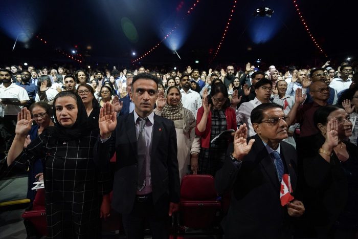 Около 400 новых канадцев из 65 стран мира принимают присягу на гражданство на церемонии в Торонто 19 июля 2024 года. Фото: THE CANADIAN PRESS/Chris Young
