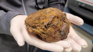 На первый взгляд, маленький рыжеватый комочек больше похож на сморщенный кожаный шарик, чем на редкую археологическую находку, хотя при более внимательном рассмотрении можно обнаружить шерсть, крошечные уши и когти.