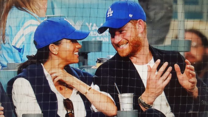 Принц Гарри и Меган Маркл наблюдают за восьмым иннингом четвёртого матча плей-офф Мировой серии MLB между командами «Лос-Анджелес Доджерс» и «Торонто Блю Джейс» в Лос-Анджелесе во вторник, 28 октября 2025 года. THE CANADIAN PRESS/Frank Gunn