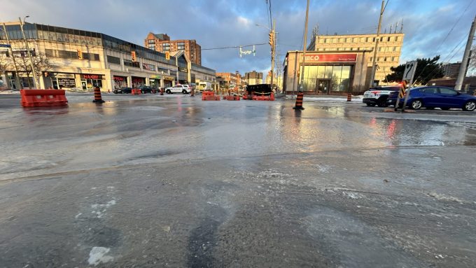 Бригады работают над устранением прорыва водопровода, из-за которого перекрыта часть улицы Hurontario в Миссиссаге.