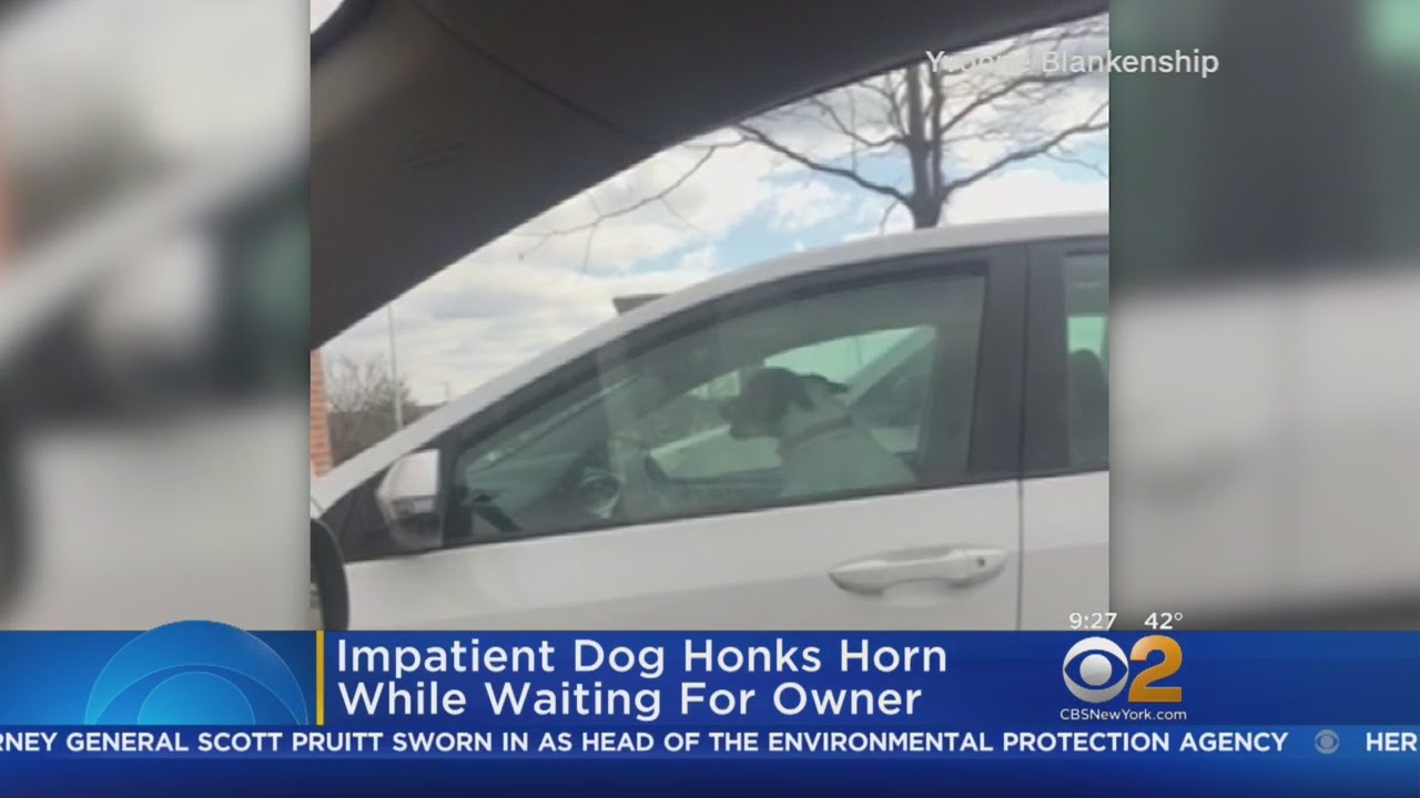 Псу, видимо, надоело сидеть в одиночестве, ему стало тоскливо. Он забрался на водительское сиденье, положил лапу на гудок и стал давить.
