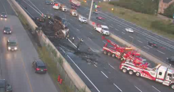 Все полосы магистрали QEW в сторону Торонто были закрыты после аварии, случившейся в Оквилле в районе улицы Trafalgar Road.