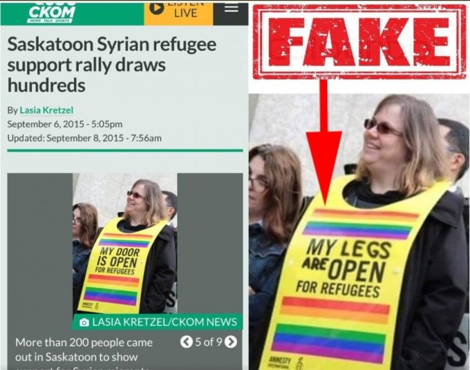 Репортер из Ванкувера Ласия Кретцель (Lasia Kretzel), работающая на радио NEWS 1130, вынуждена была принять меры, когда увидела «отредактированное», сделанное ею фото, в Твиттере британского политика и телеведущего Найджела Фаража (Nigel Farage).