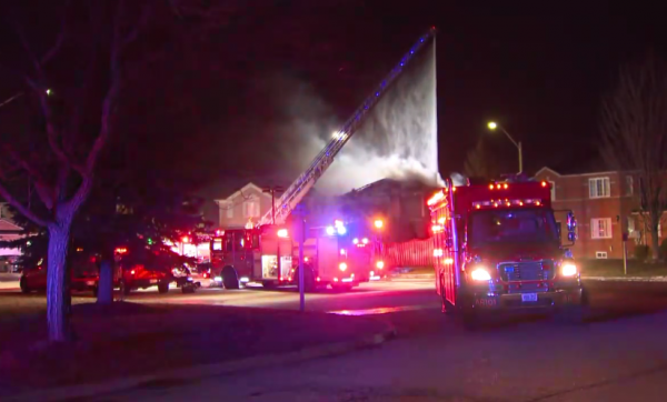 Прибывшие на место происшествия спасательные службы прибыли около 22:30 в дом, расположенный недалеко от пересечения улиц Mavis и Bristol, и обнаружили, что он охвачен пламенем.